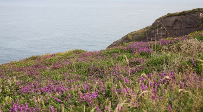The first part of the cycle proper route took me along the rolling roads of the Copper Coast, to Ardmore Head. The terrain was tough, tougher than I expected; a succession of short but steep climbs out of the many coves scattered along the coast here, some of these inclines up to 12%. Not ideal terrain for trying to make up time as I felt I was running behind schedule. I certainly agree that cycling is a wonderful way to experience the unfolding landscape; you see it with your eyes and feel it in your legs. Was glad to stop at Ardmore to take a break, and to meet with Tomás Murray at this very rich heathland. The heath, heather and gorse covered headland is amazingly rich site for insects, as the dry crumbly soil provides nesting habitats and the abundance of flowers rich feeding. He told us all about the mysterious world of our social insects, and Bella was even overheard saying that she found them fascinating. (She also said that Tomás should work as a teacher as he was so good at explaining things – but I won’t tell him that, as we don’t want to lose him form the Data Centre!). Tomás needs to check identification, but he might have made an exciting discovery! The second half of the journey was far easier as the roads were better, and less undulating. Picked up the pace quite a bit, and cycled through nice quiet countryside on my route to Whitegate. This is rich farming land with little semi-natural habitat. But the rich banks and hedgerow make up for it at this time of year, a riot of diversity and colour.